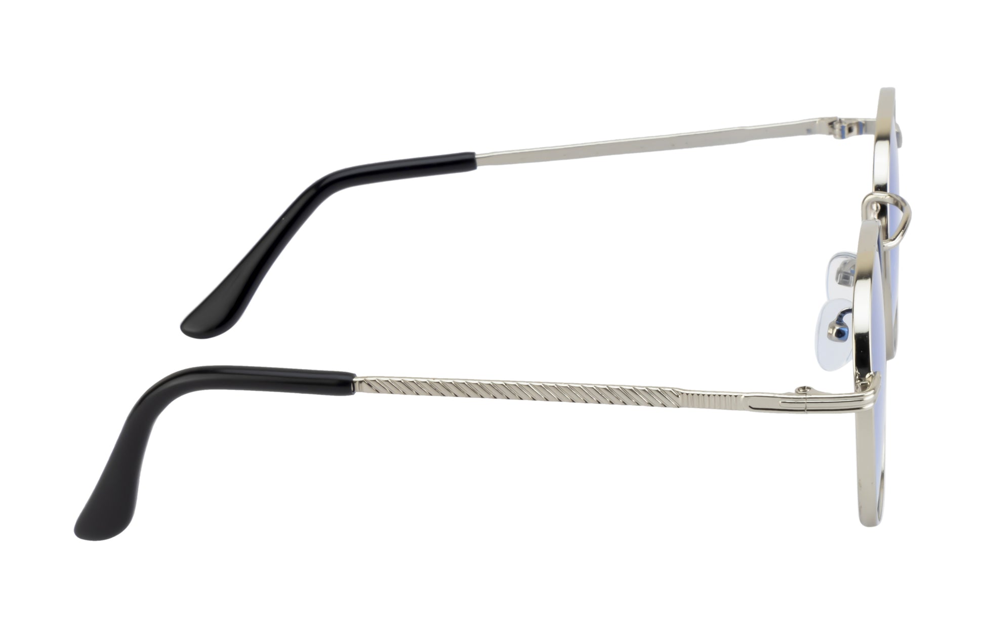 The frame is crafted from premium lightweight metal in a sleek silver finish, offering both durability and a refined look. The thin, minimalistic bridge and adjustable nose pads provide enhanced comfort and a customized fit, ensuring the sunglasses stay securely in place all day long.