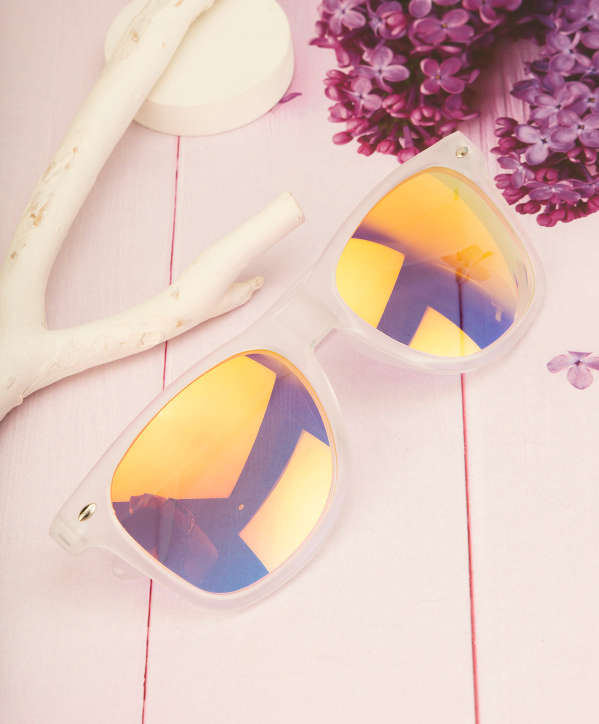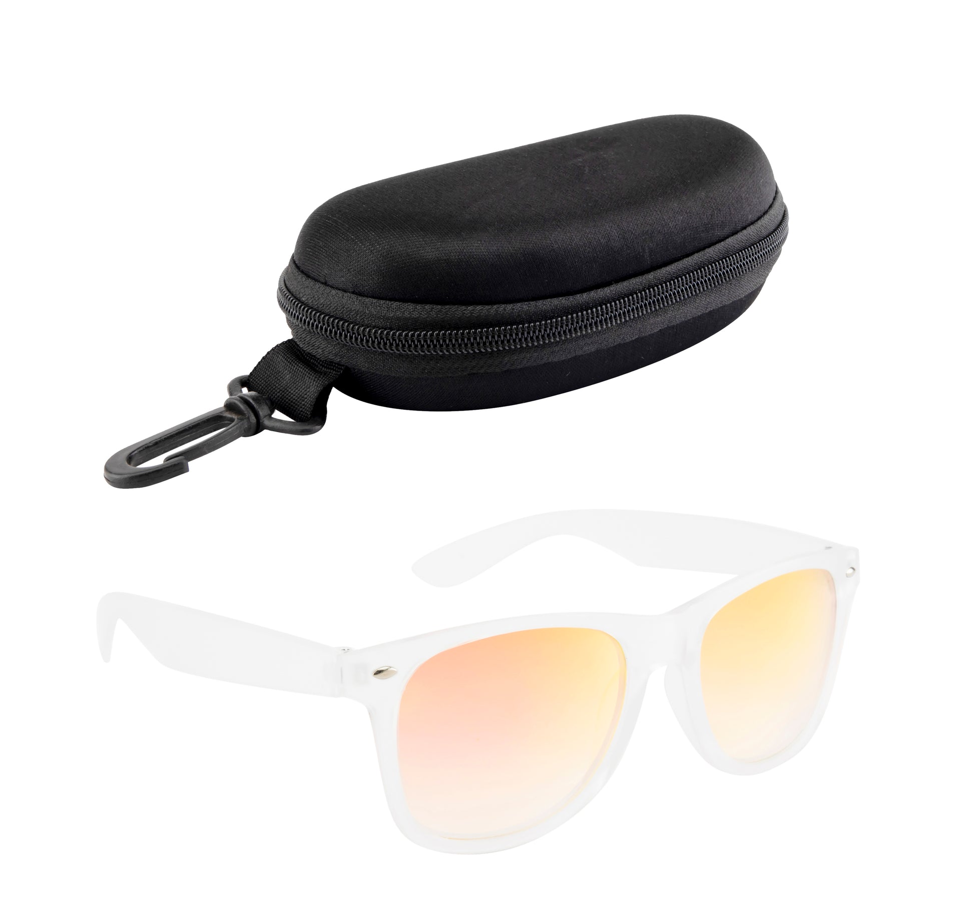 Introducing the Clark N Palmer Frosted Amber Blaze Sunglasses, where vibrant style meets everyday functionality. Featuring a modern frosted translucent frame, these sunglasses bring a contemporary edge to the classic wayfarer design. The standout feature is the fiery amber-yellow mirrored lenses, which reflect dynamic hues of gold, orange, and hints of purple—perfect for making a bold statement.